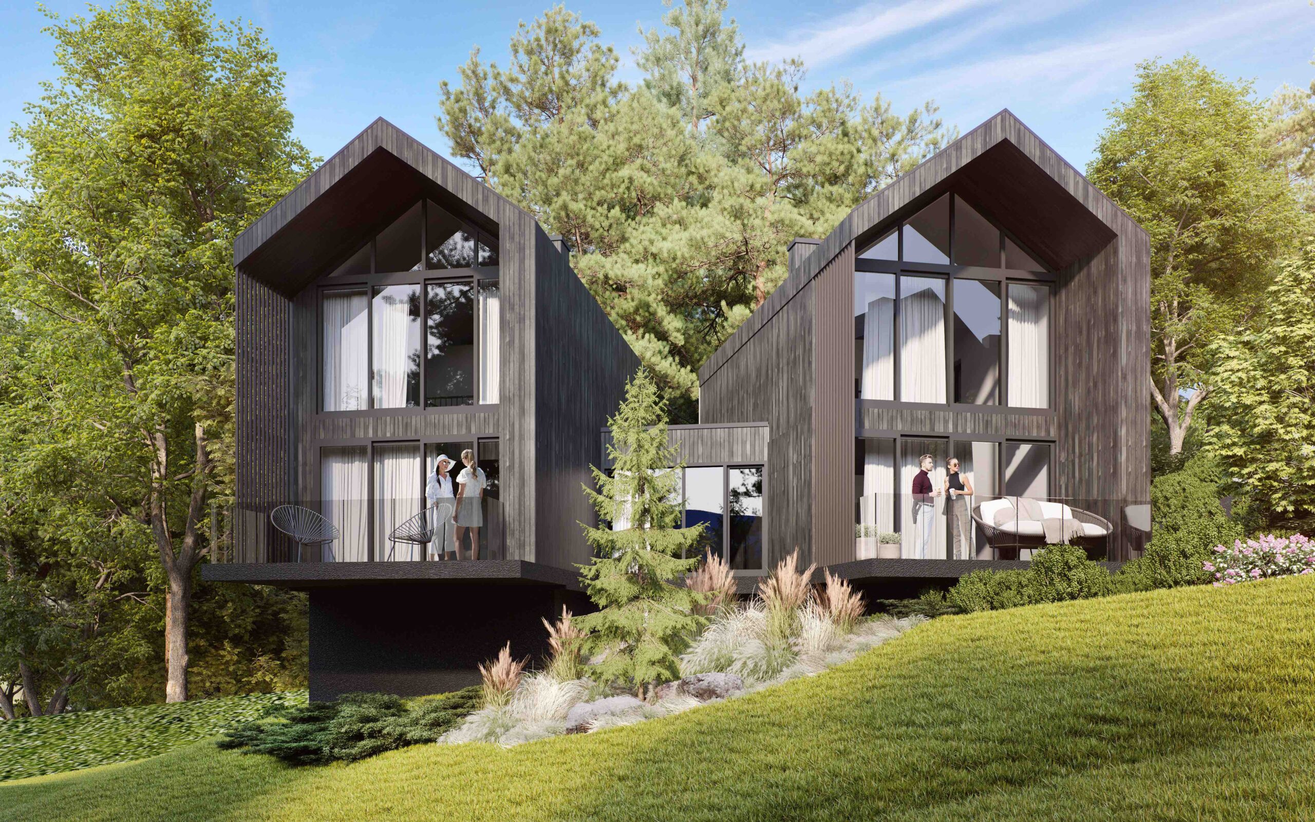 Dolina 7 Wzgórz to planowany kompleks apartamentów rekreacyjnych w Zachełmiu – spokojnej górskiej miejscowości w południowo-zachodniej Polsce, położonej w pobliżu granicy niemieckiej i czeskiej. Inwestycja o łącznej powierzchni ok. 6 700 m² będzie realizowana w trzech etapach i obejmie 126 apartamentów (średnia powierzchnia 41 m²) oraz ok. 1 500 m² usług towarzyszących, w tym restaurację, basen i strefę SPA. Zgodnie z koncepcją architektoniczną obiekty harmonijnie wpisują się w leśny, górski krajobraz – z nowoczesnymi, minimalistycznymi bryłami, dużymi przeszkleniami i tarasami sprzyjającymi wypoczynkowi z widokiem na otoczenie.